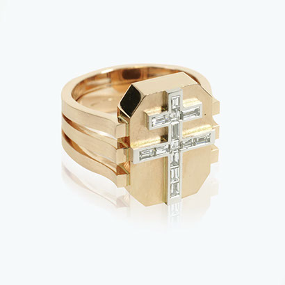 Bischofsring, Rotgold, Platin und Diamanten